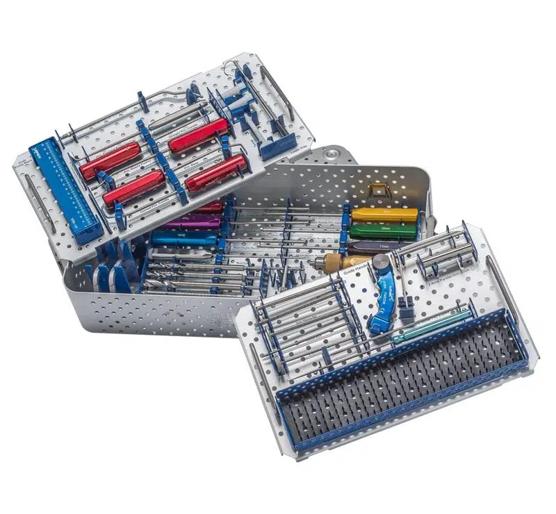 The streamlined PCL ToolBox contains all the necessary instruments for performing a variety of modern PCL reconstruction techniques. The set includes the RetroConstruction™ Drill Guide System with drill sleeves for use with the FlipCutter® reamer, RetroDrill® reamer, and standard 2.4 mm guide pins.